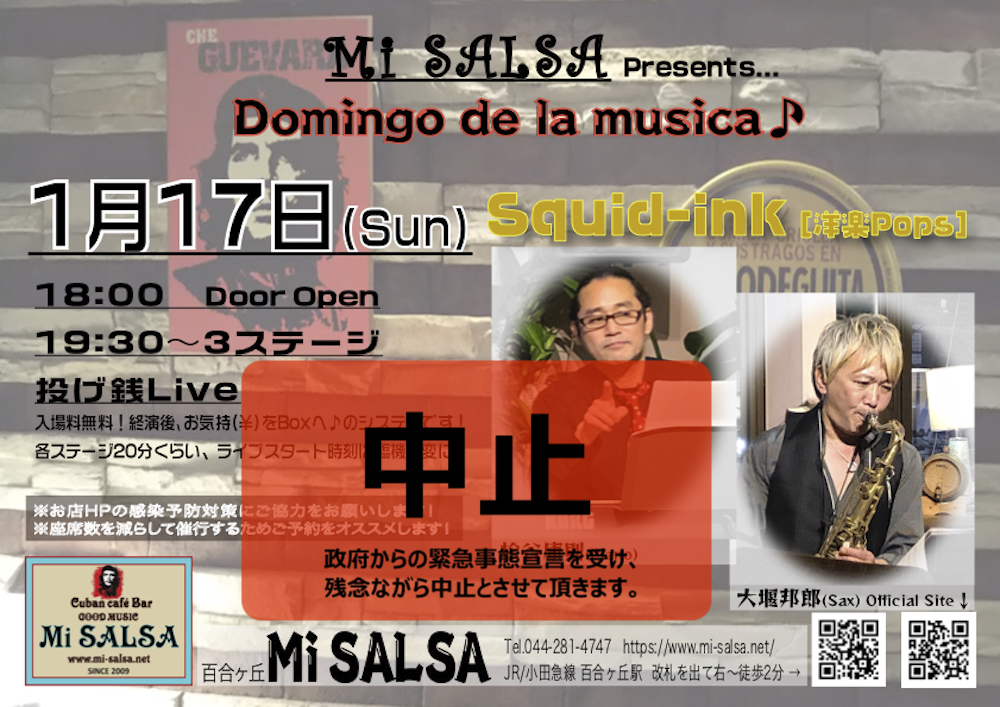 1月17日(日) 新型コロナウイルス感染症対策による緊急事態宣言を受け中止とさせて頂きました m(__)m