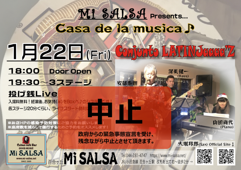 1月22日(金) 新型コロナウイルス感染症対策による緊急事態宣言を受け中止とさせて頂きました m(__)m