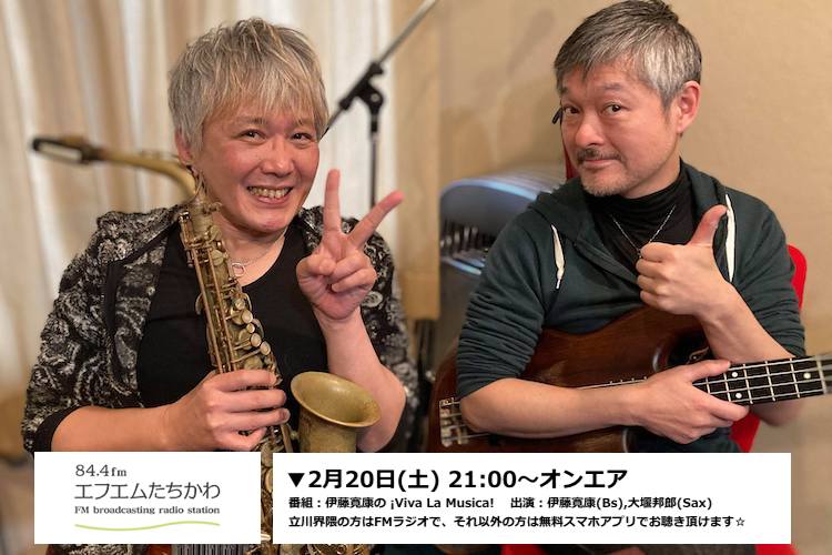 ※立川市界隈の方はFMラジオで,それ以外の方は無料スマホアプリでお聴き頂けます☆