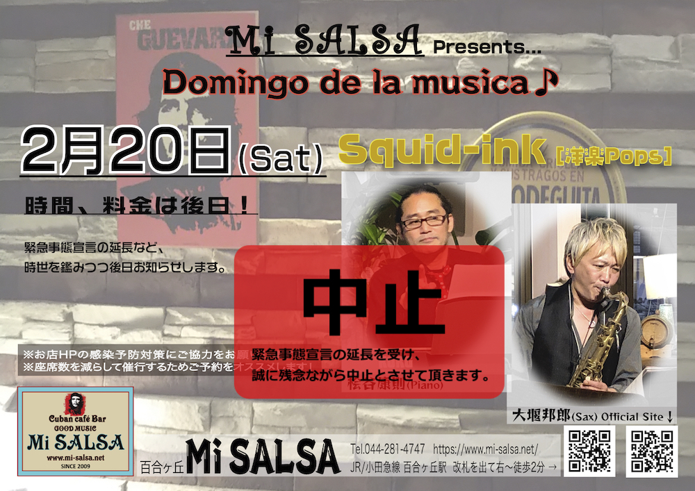 2月20日(土) 新型コロナウイルス感染症対策による緊急事態宣言の延長を受け中止とさせて頂きました m(__)m
