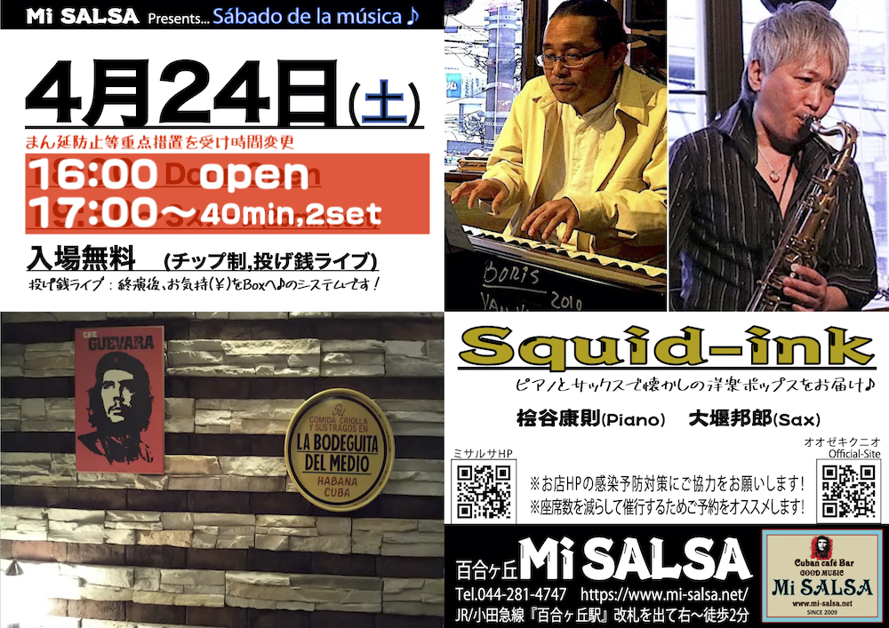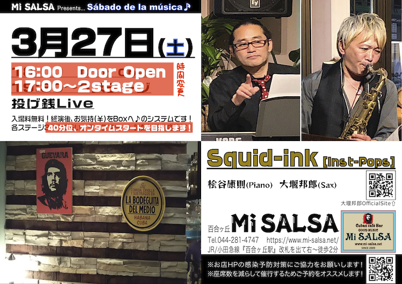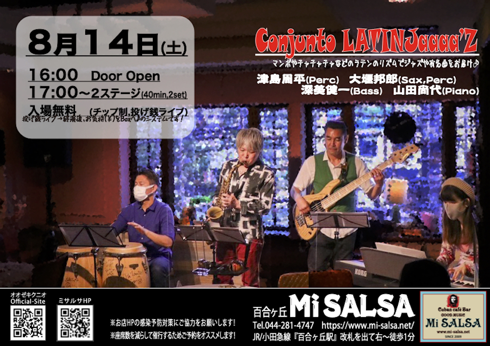 伊藤寛康(Bs), 吉田敦(Pf), 塩のやもとひろ(Pc), 大堰邦郎(Sax)