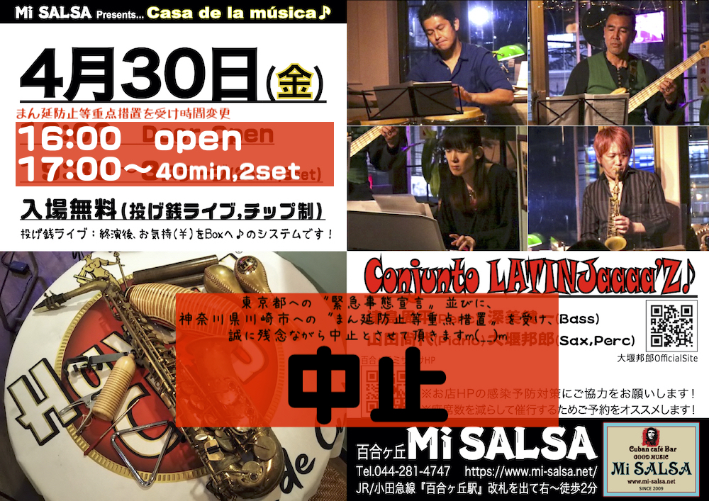 その後に発出された”緊急事態宣言”を受け中止とさせて頂きました m(__)m