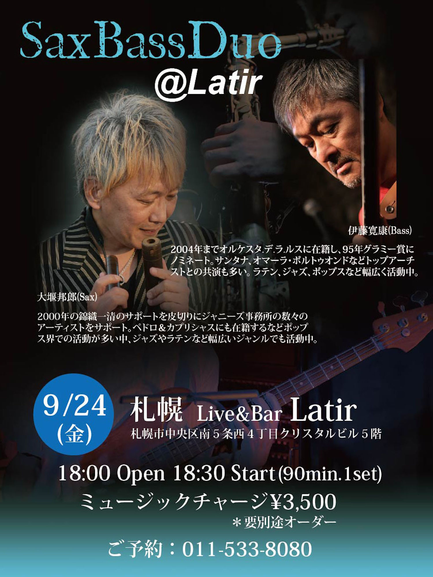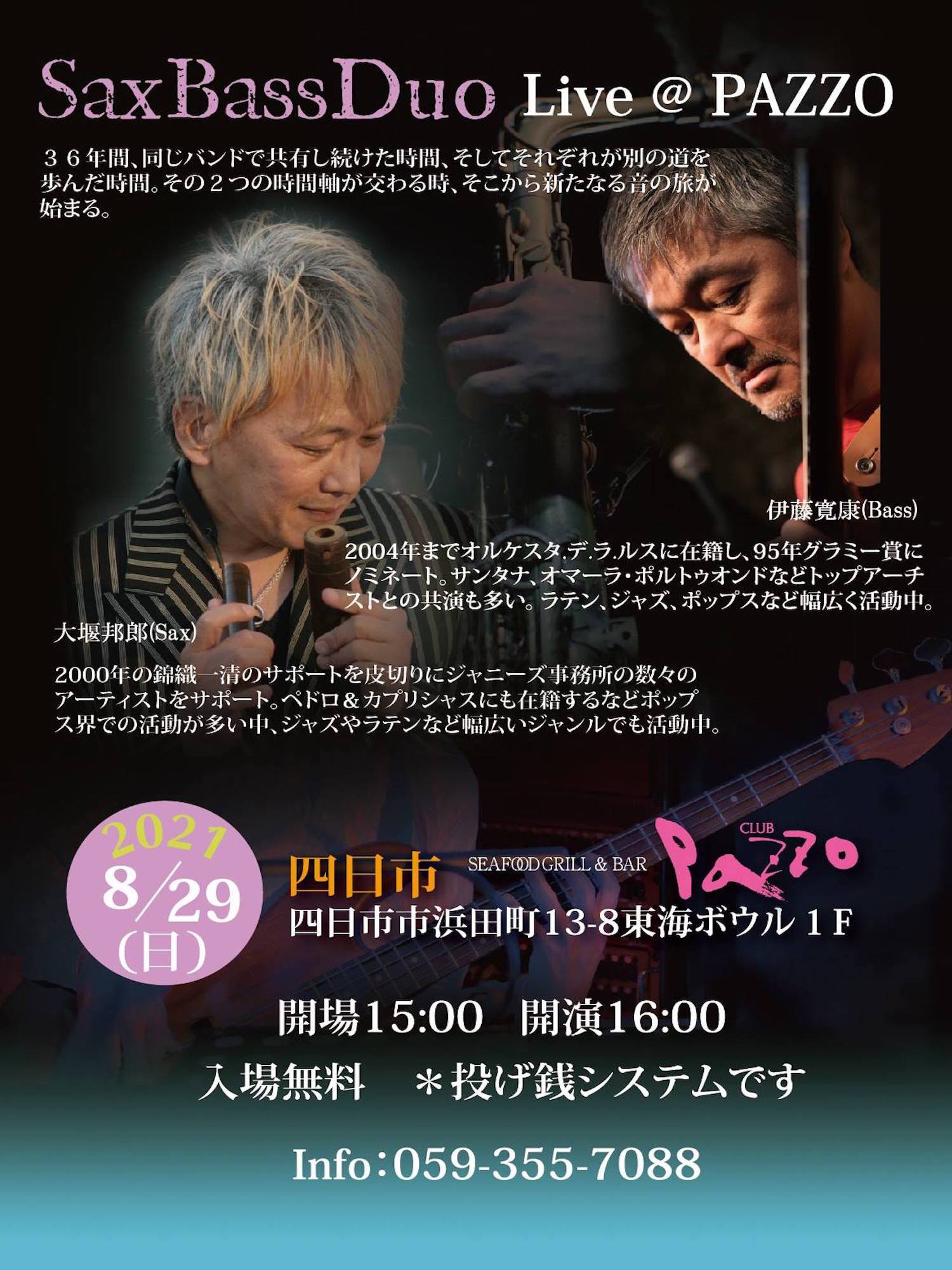 出演:SaxBassDuo 伊藤寛康(Bs), 大堰邦郎(Sax)