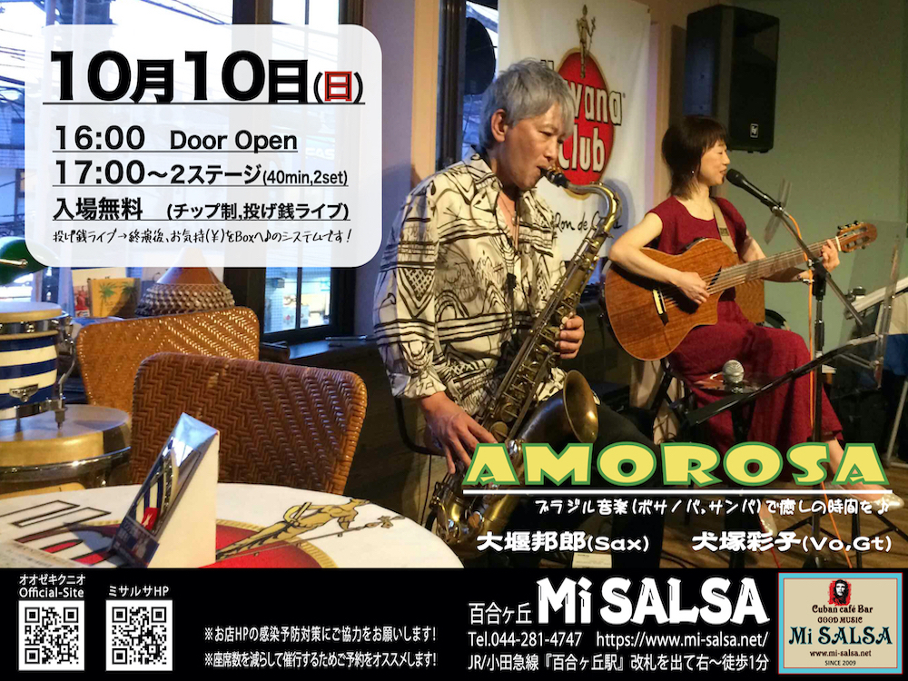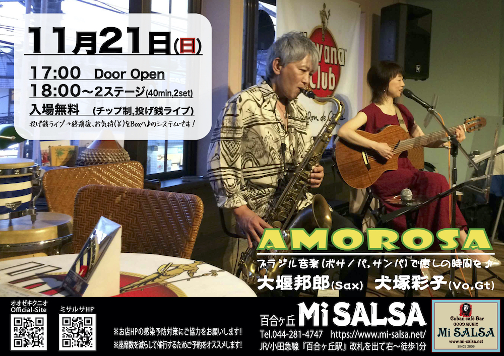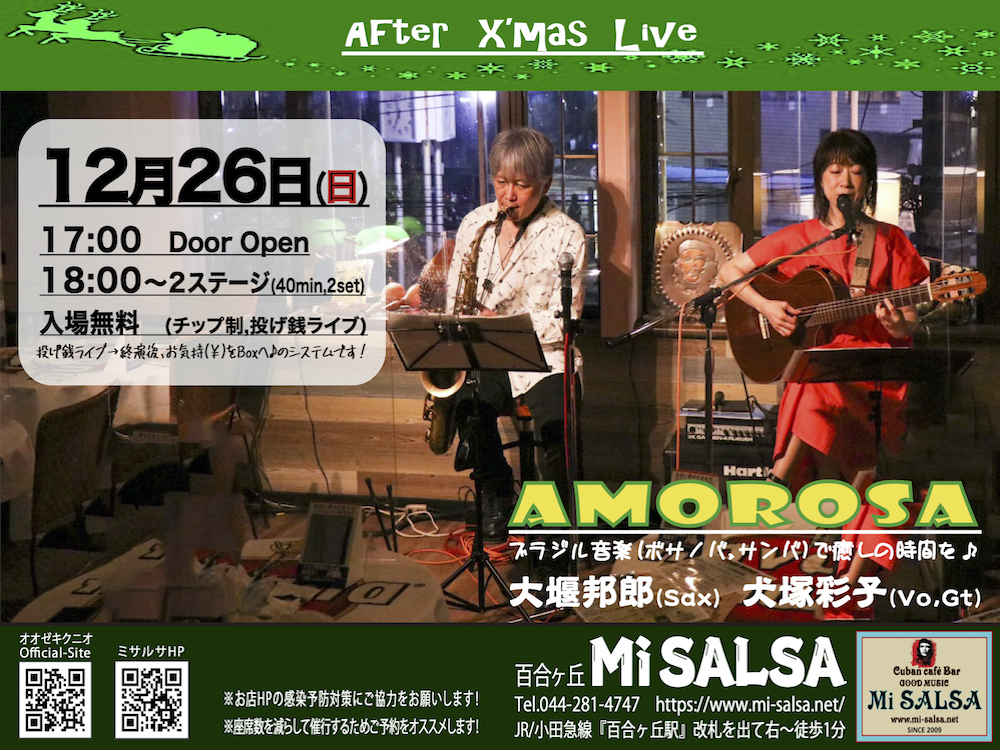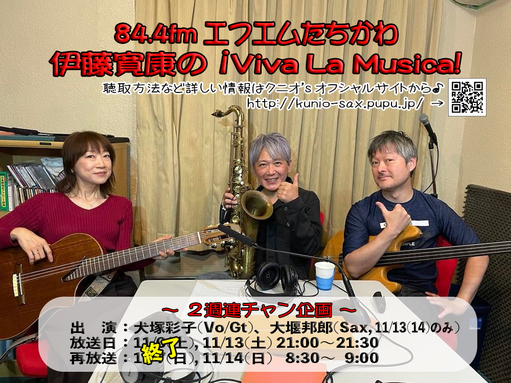 出 演:犬塚彩子(Vo,Gt), 大堰邦郎(Sax,11/13,14のみ)