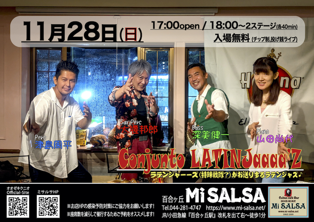 ◆結成30年,正統派精鋭たちがスタンダードJazz〜オリジナル曲をラテンアレンジでお届け♪
