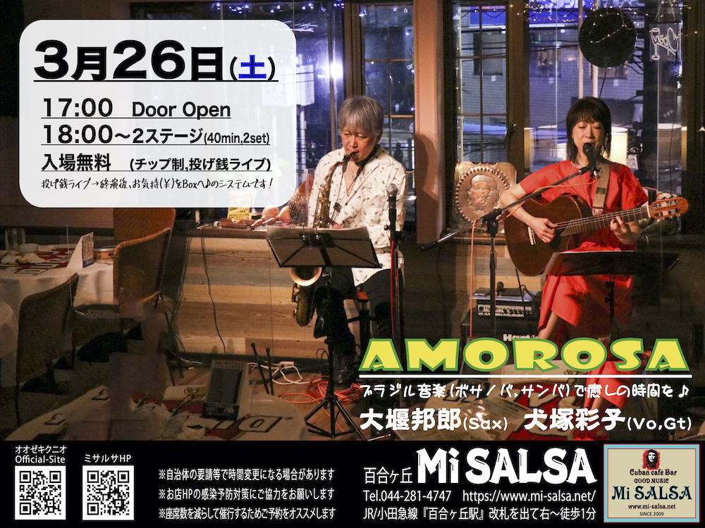 犬塚彩子(Gt,Vo), 大堰邦郎(Sax)