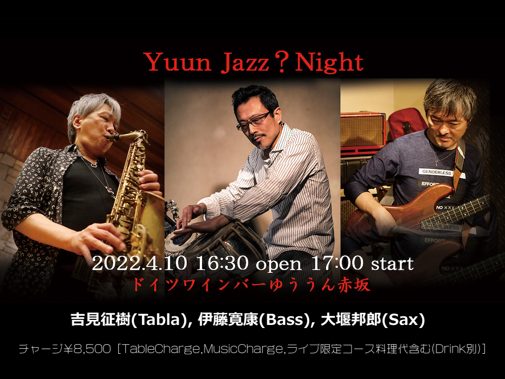 伊藤寛康(Bs), 吉田敦(Pf), 塩のやもとひろ(Pc), 大堰邦郎(Sax)