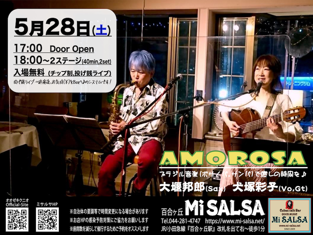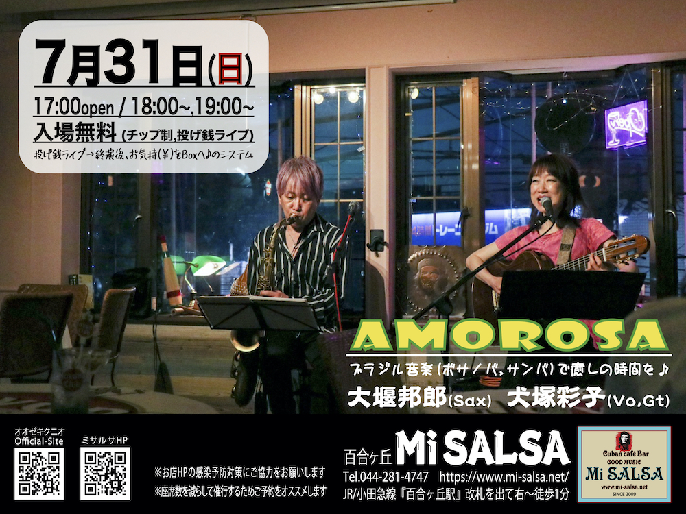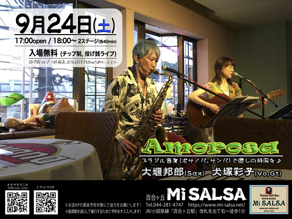 17:00open / 18:00〜Live (40min, 2set) ※状況により時間変更の可能性あり