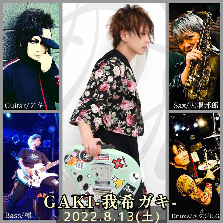 我希(Vo,Gt), アキ(Gt), マキ(Bs,Cho), UG(Dr)、Guest:大堰邦郎(Sax)