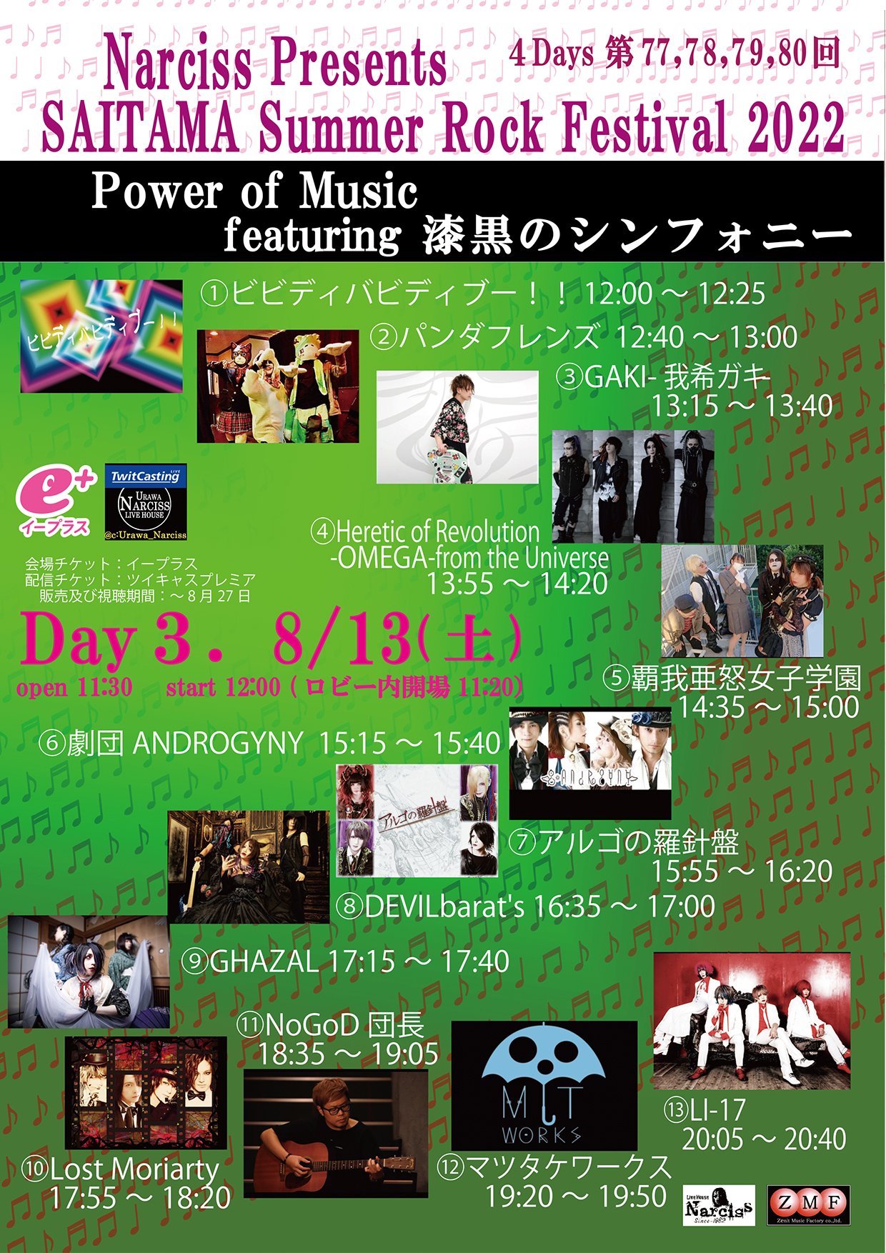 開場12:00〜19:30 / ライブ13:00〜18:30 (全5グループ)