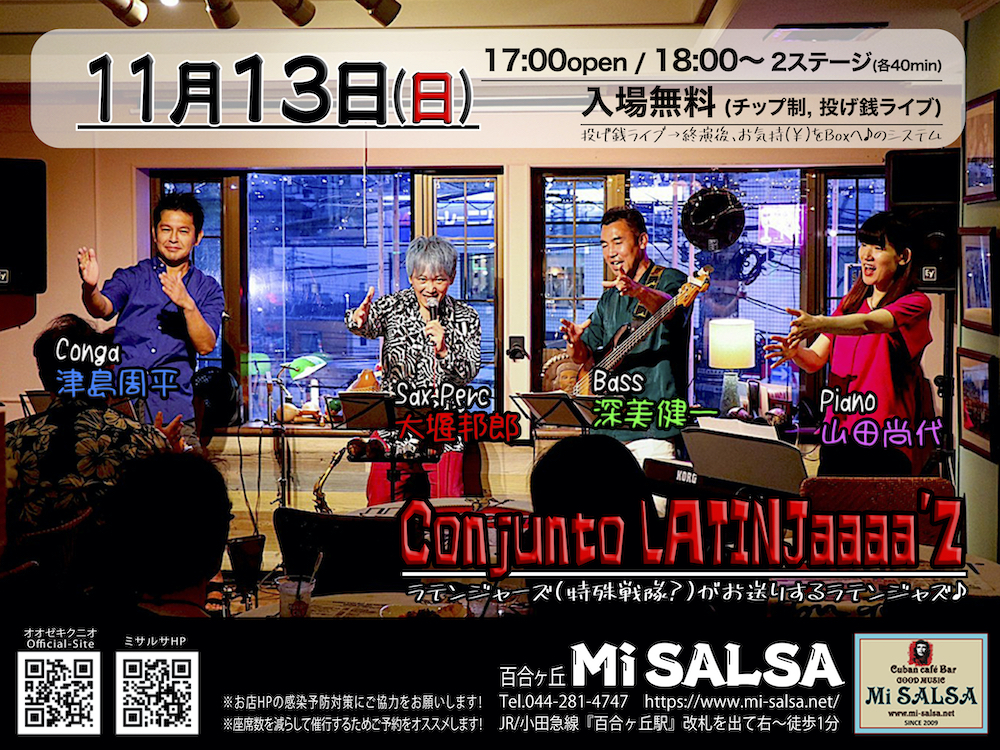 ◆結成35年超え,正統派精鋭たちがスタンダードJazz〜オリジナル曲をラテンアレンジでお届け♪